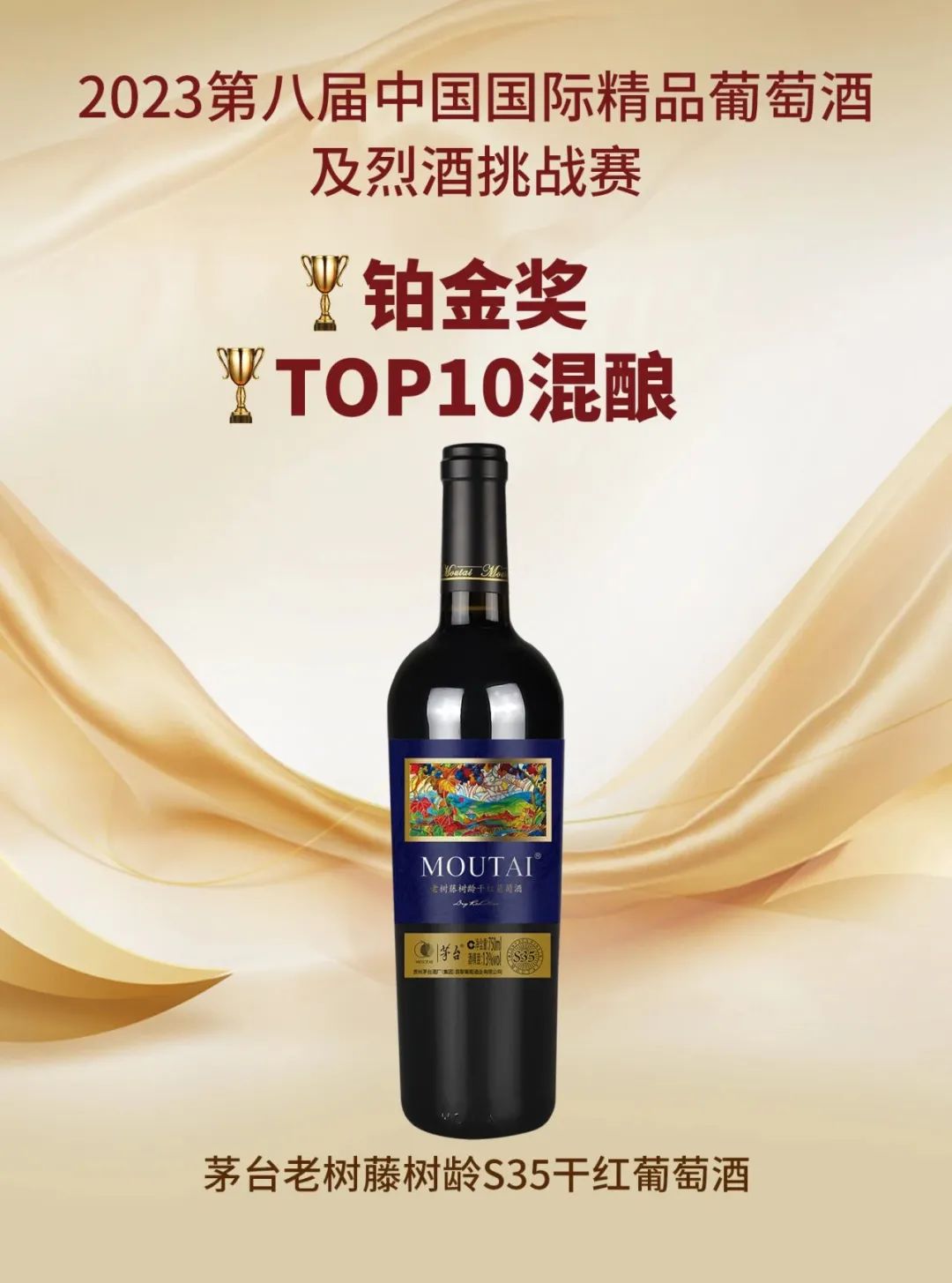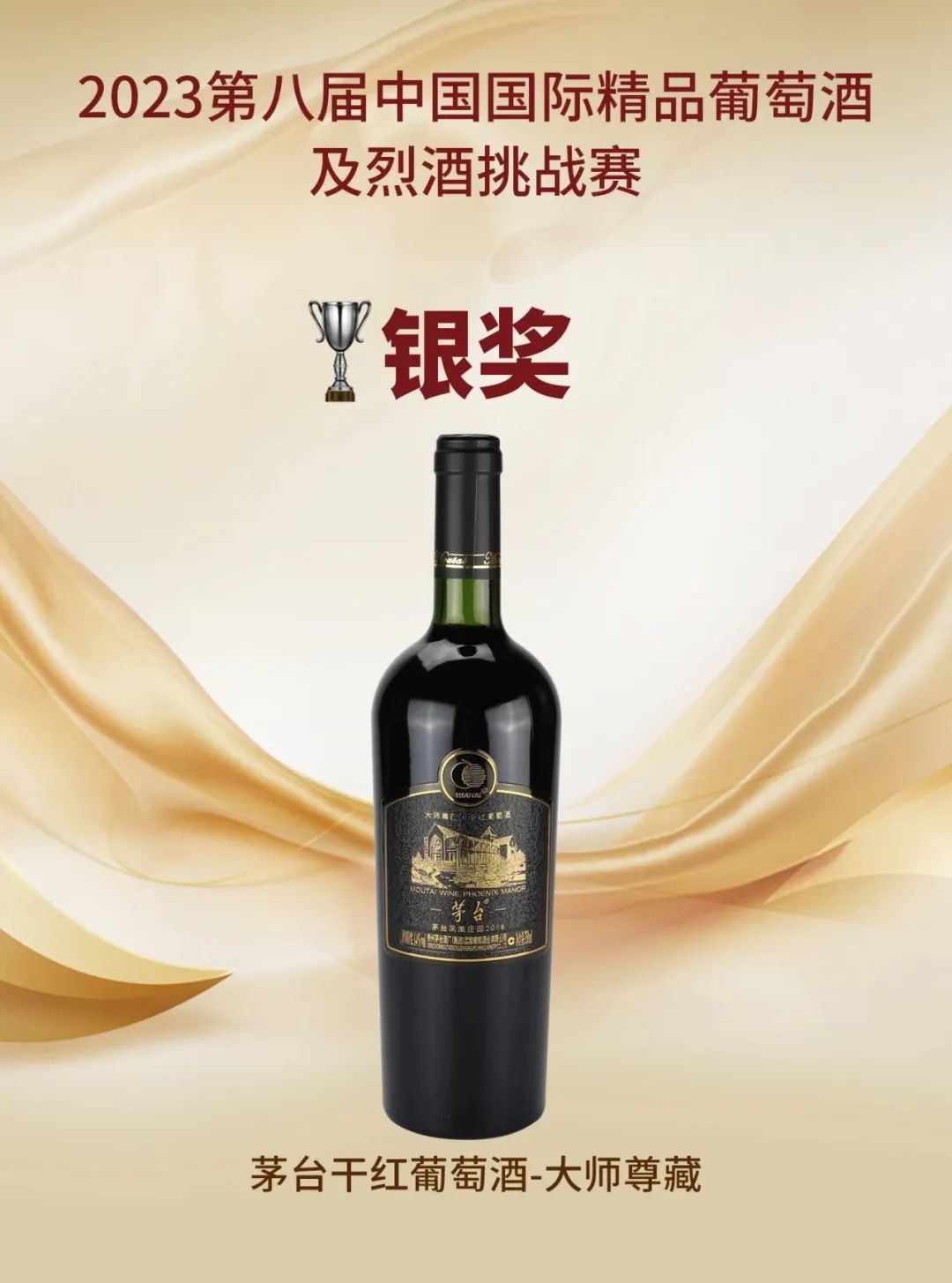 茅台葡萄酒多款产品斩获第八届中国国际精品葡萄酒及烈酒挑战赛多项大奖!其中茅台老树藤树龄S35干红葡萄酒荣获铂金奖和TOP10混酿;茅台凤凰庄园干红葡萄酒(R5赤霞珠)荣获金奖和TOP10赤霞珠;茅台凤凰庄园干红葡萄酒(R5西拉)、茅台国粹火凤干红葡萄酒荣获金奖;茅台干红葡萄酒-大师尊藏荣获银奖。