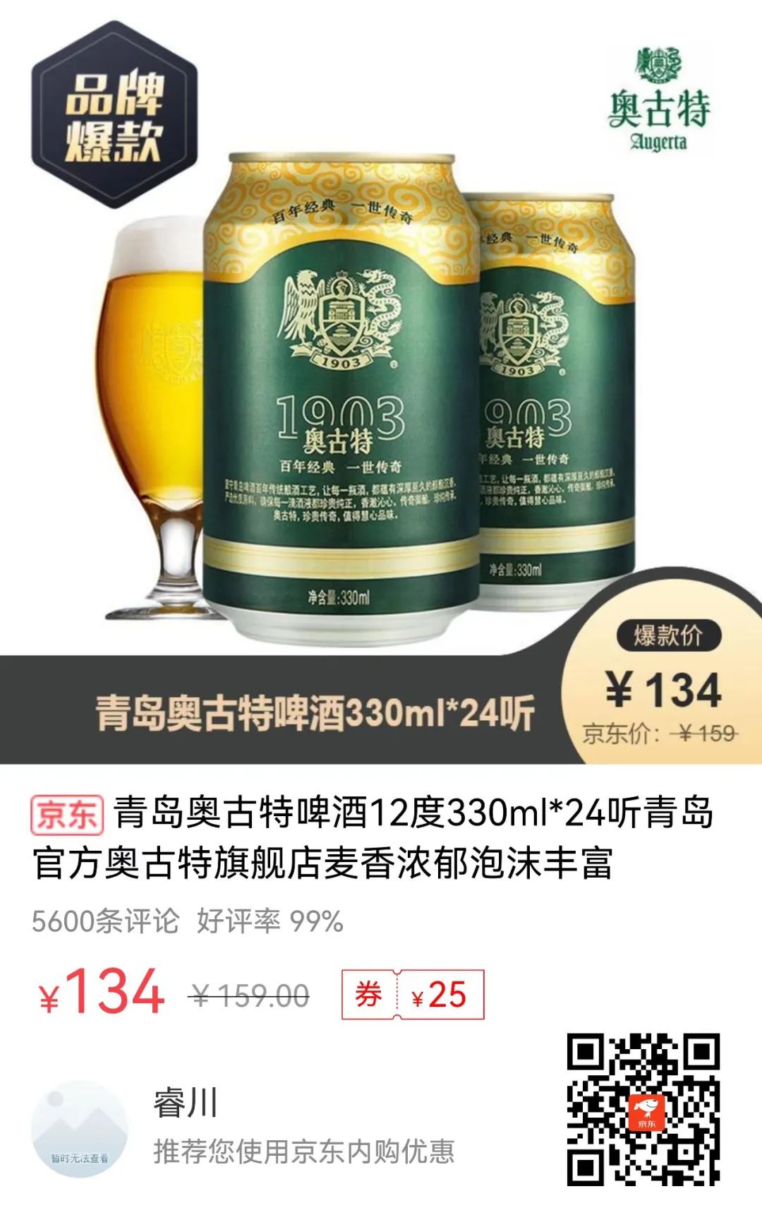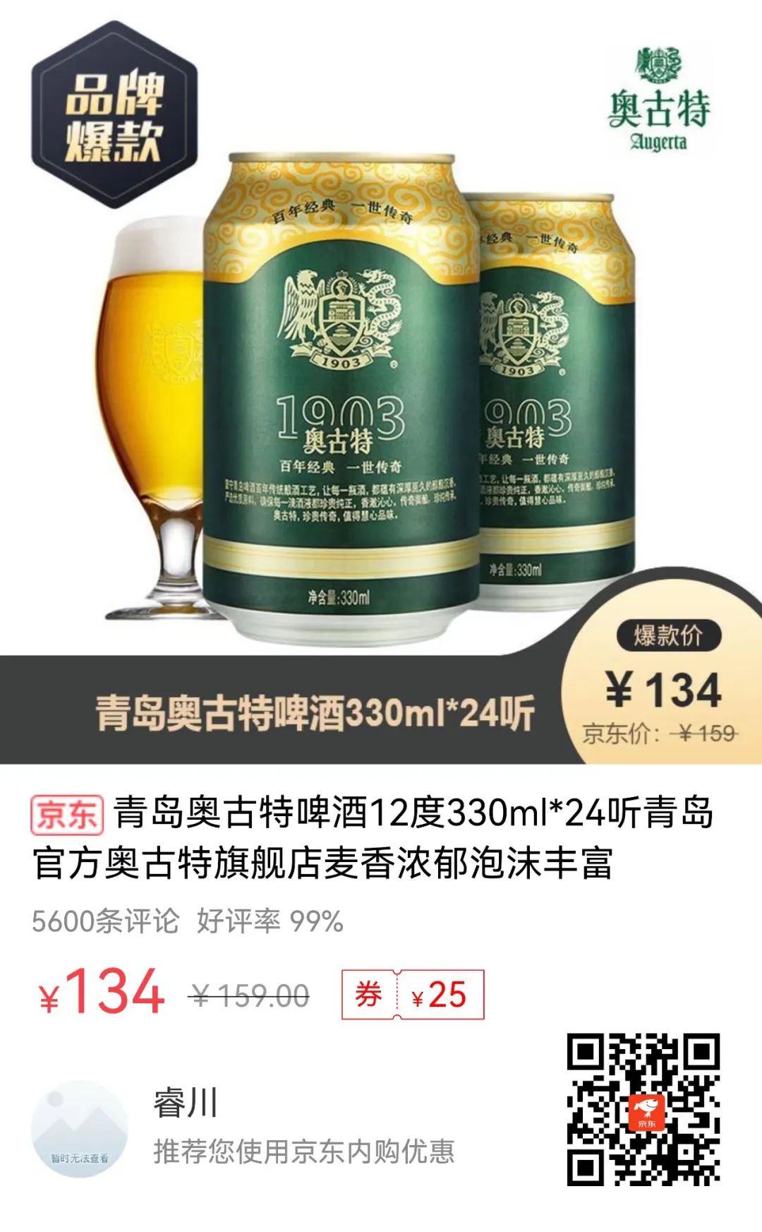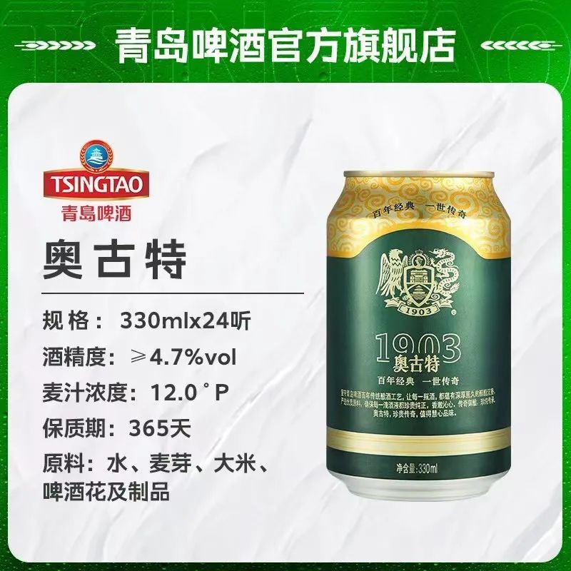 青岛奥古特啤酒12度330ml*24听
