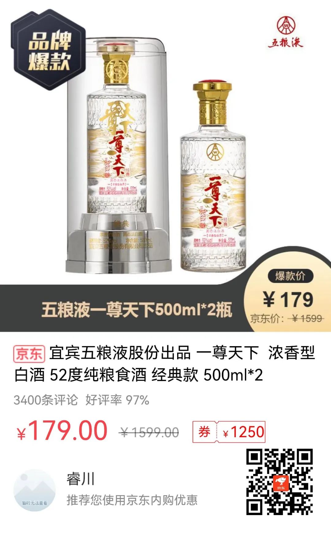 179元500mL*2瓶 浓香型 52°