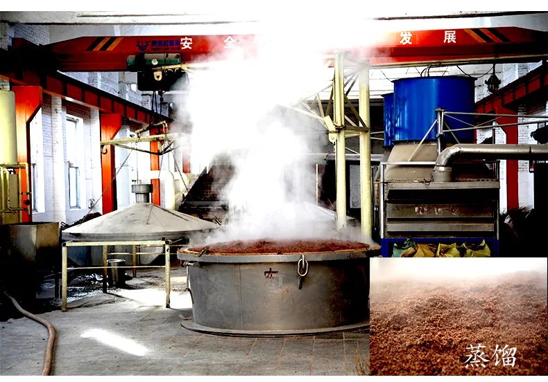 酒醅蒸馏主要是提取酒精及香味物质并蒸人一定量的水,也混入一些微量物质,与此同时还排出了由固形物及高沸点物质与水等组成的酒糟。另外,从气相排出一些低沸点杂质,如二氧化碳、乙醛、硫化氢、游离氨等。在分离的同时对酒精及香味成分起到了浓缩作用。将酒醅中4%~6%酒精浓缩到50%~70%,其他香味物质也增加了浓度,从而使白酒保持应有的酒精量并具有特殊芳香。