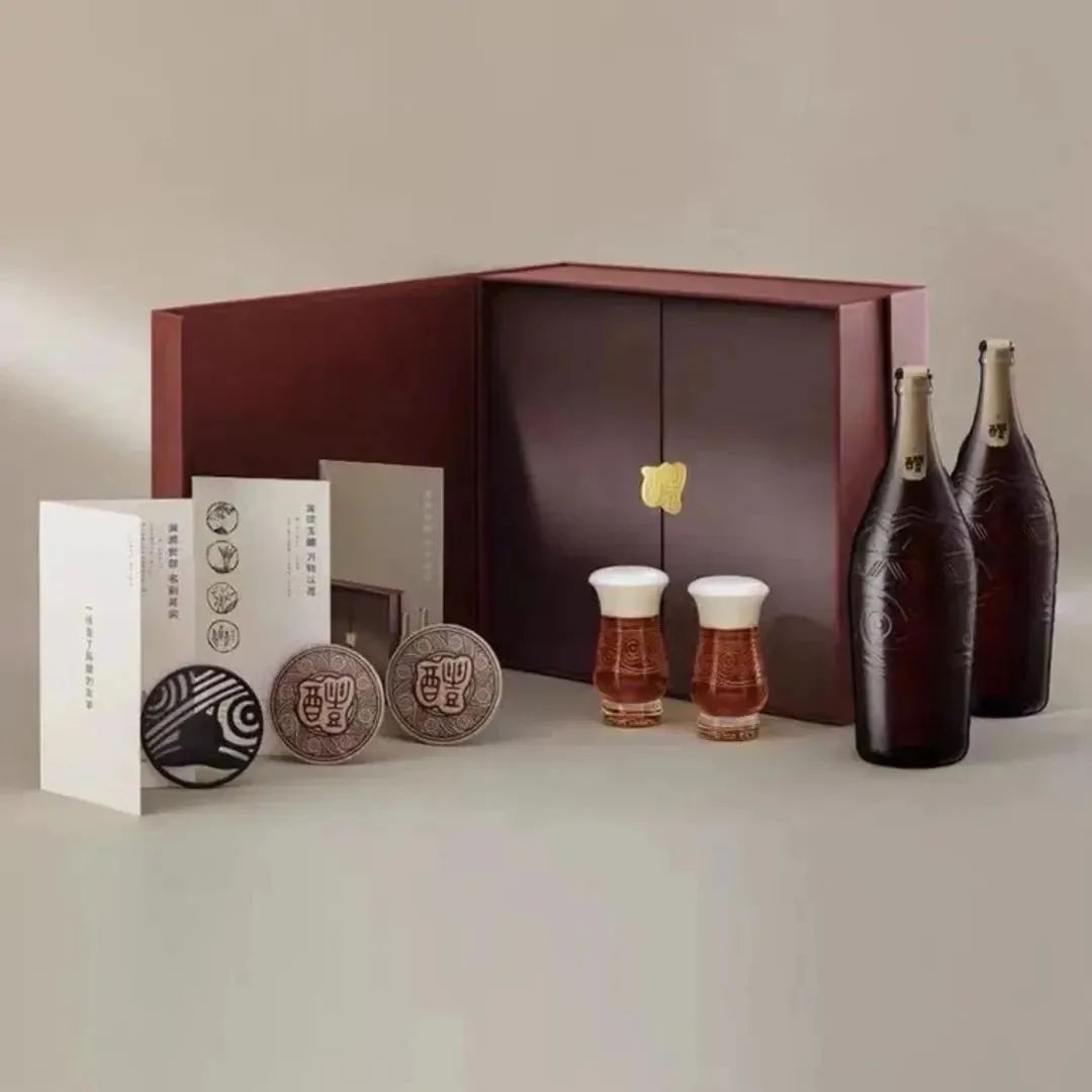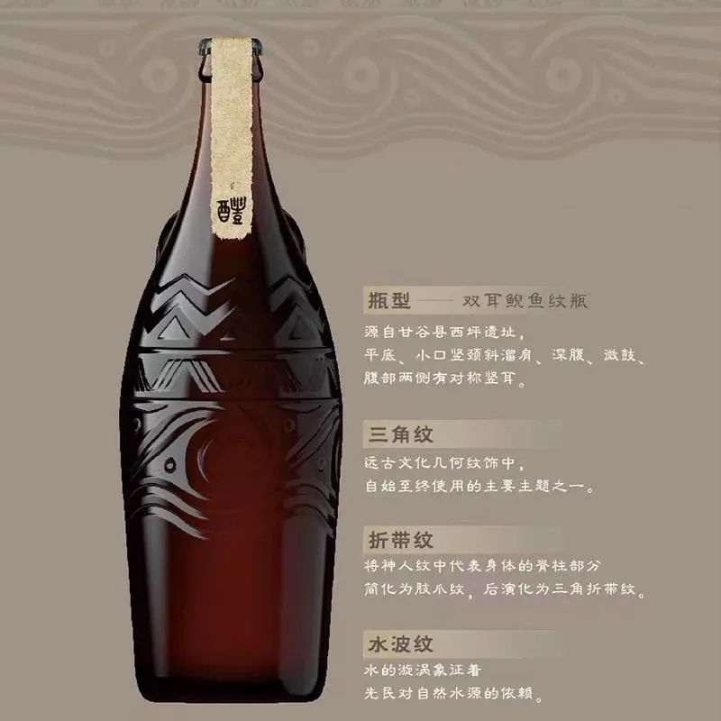 外观:作为致敬中华啤酒文化的一款啤酒,醴的瓶身设计极具文化感:取自新石器时代仰韶文化中的“双耳鲵鱼纹瓶”为基本瓶型,表面还雕刻有寓意美好的水纹、折纹等纹饰,中国酒业协会理事长宋书玉形容其为“器型设计彰显古韵,也不失现代艺术”。而且,考究的礼盒中,不仅配有两瓶醴,寓意“好事成双”,而且还配置了两个精美醴酒杯——器型仿青铜觯,寓意以尊者之器,成就君子之交,以及印有“醴”字样的开瓶器和杯垫两枚,十分贴心。