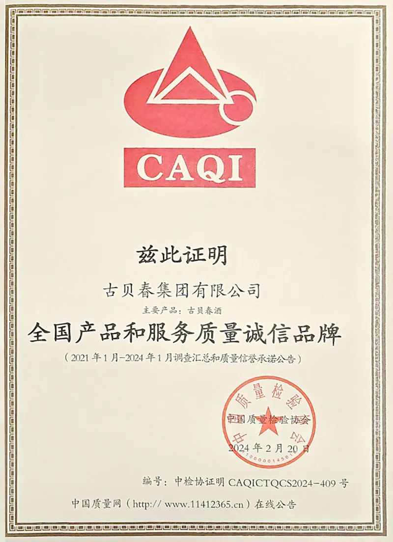 中国质量检验协会作为全国产品质量监督检验领域的国家级质量专业机构,在传递质量信任、引导质量消费、向广大消费者提供权威可靠的质量消费信息等方面发挥着至关重要的作用。古贝春集团能够在此类权威机构的评选中脱颖而出,足以证明古贝春集团在质量责任、质量安全、质量诚信等方面所做出的努力和取得的成就。