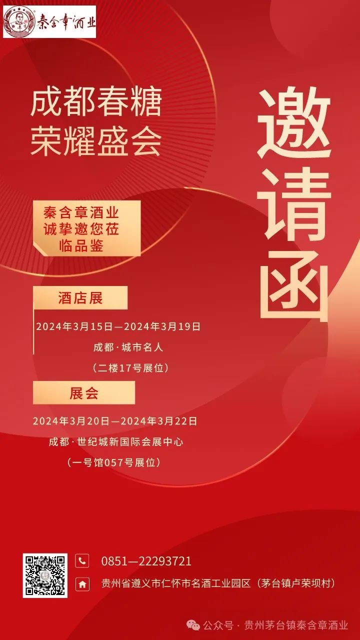在此,秦含章酒业诚邀全国各地的经销商以及酱酒的爱好者和消费者们,共聚成都,共享这场酒业的年度盛事,共创辉煌。