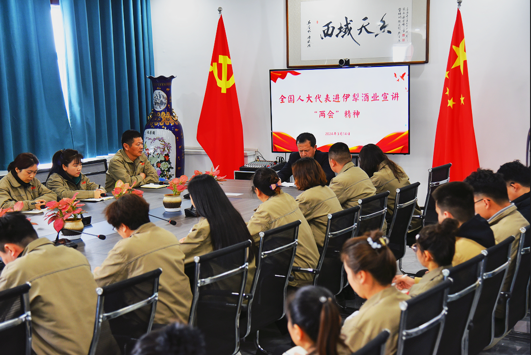 为深入学习贯彻2024年全国“两会”精神,全方位了解国家的发展方向和最新政策。3月14日,全国人大代表木沙江·海拉特走进伊犁酒业,向企业员工深入宣讲全国“两会”精神。此次宣讲活动的目的在于让企业员工更全面地理解两会的重要内容和精神实质,以此激发企业发展的内在动力,促进社会整体进步。
