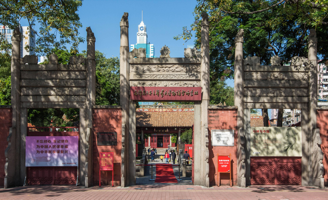 原是番禺学宫,始建于明洪武三年(1370)。这座宏伟的古建筑群坐北朝南,从南至北由棂星门、泮池拱桥、大成门、大成殿、崇圣殿等组成,两边有庑廊等宏大建筑。毛泽东同志曾于1926年在此举办第六届农民运动讲习活动。