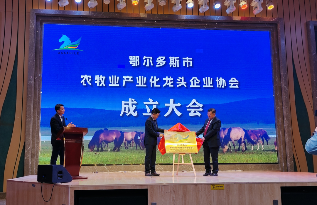 为加快建设国家重要农畜产品生产基地,构建现代化大农牧产业集群,3月12日,鄂尔多斯市农牧业产业化龙头企业协会成立大会在康巴什区召开,全市53家会员单位参加了会议。会上,筹备组向大会作筹备工作报告,并审议通过了协会章程。市农投开发公司荣任协会副会长单位,市人民政府副市长额登毕力格与出席领导共同为市农牧业产业化龙头企业协会揭牌。