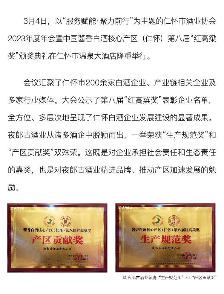 仁怀第八届“红高粱奖”揭幕丨夜郎古酒业荣膺“生产规范奖”和“产区贡献奖”