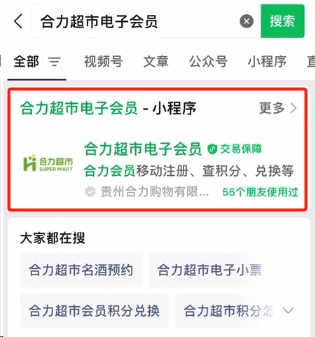 在微信小程序搜索“合力超市电子会员”。