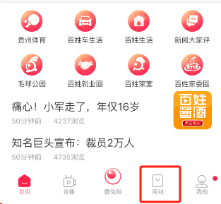 打开“百姓关注APP”,点击下方的商城。