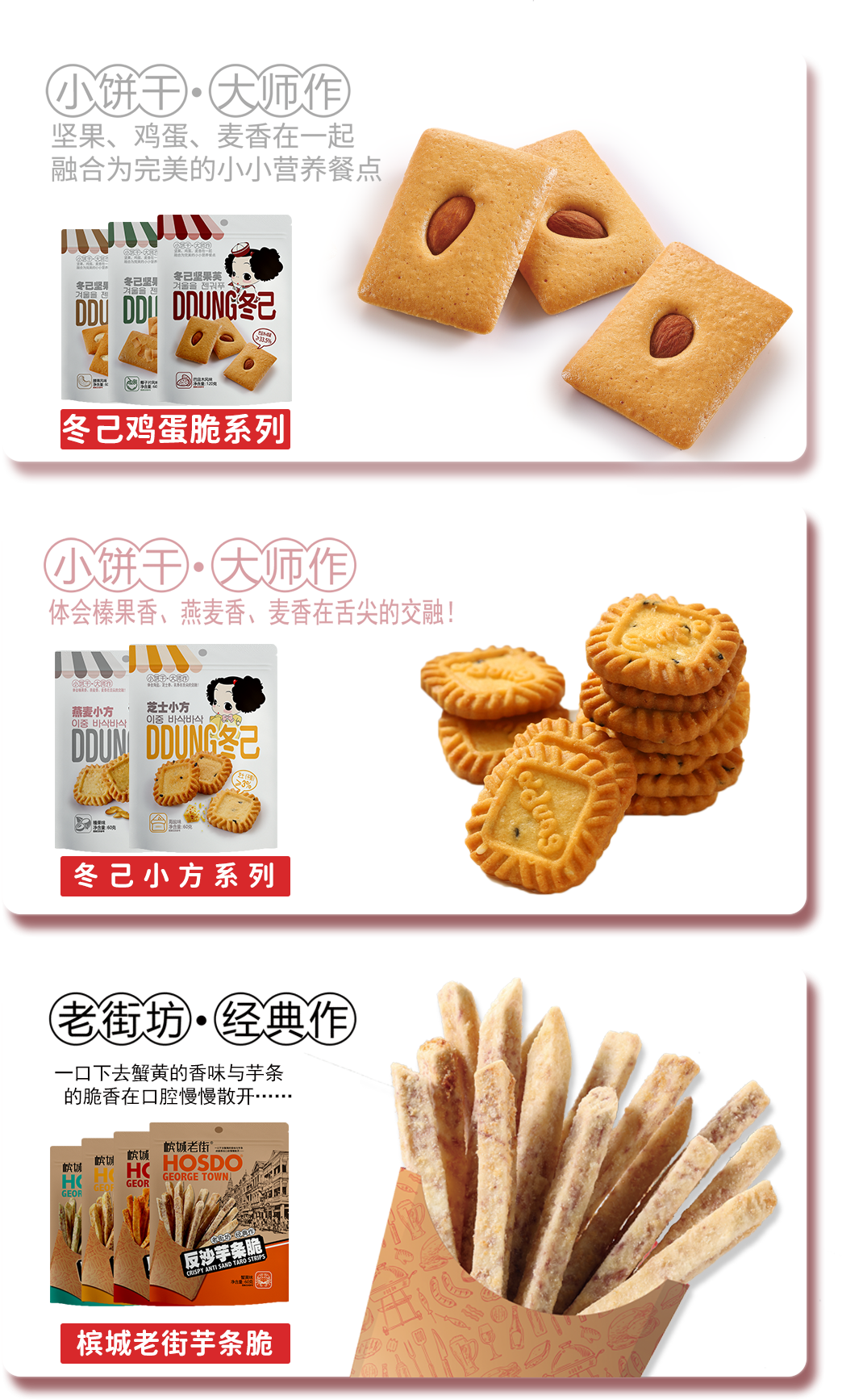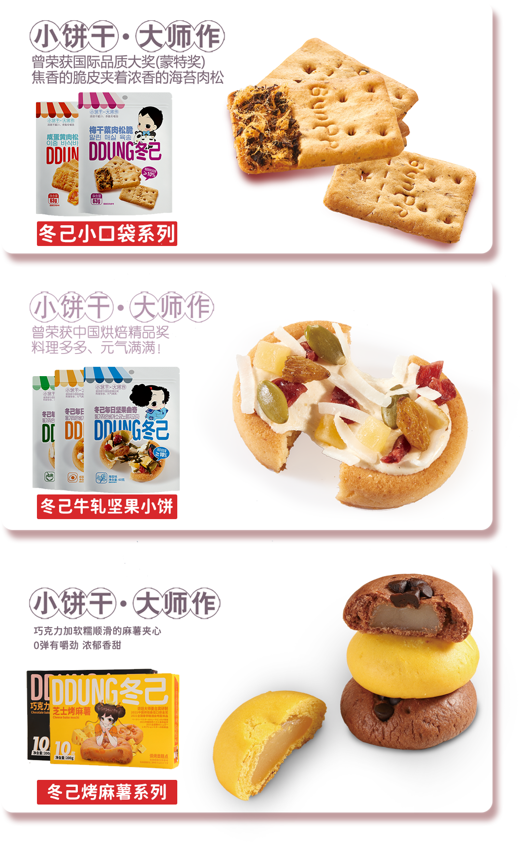 目前公司旗下拥有冬己、好食多、槟城老街、小猫人等食品品牌,深受行业经销商及广大消费者青睐。冬己麦芽饼更在各大社交平台及网红博主中受到大量赞誉,现已成为全国休闲食品知名品牌,且连续数年线上线下销售数据TOP1。