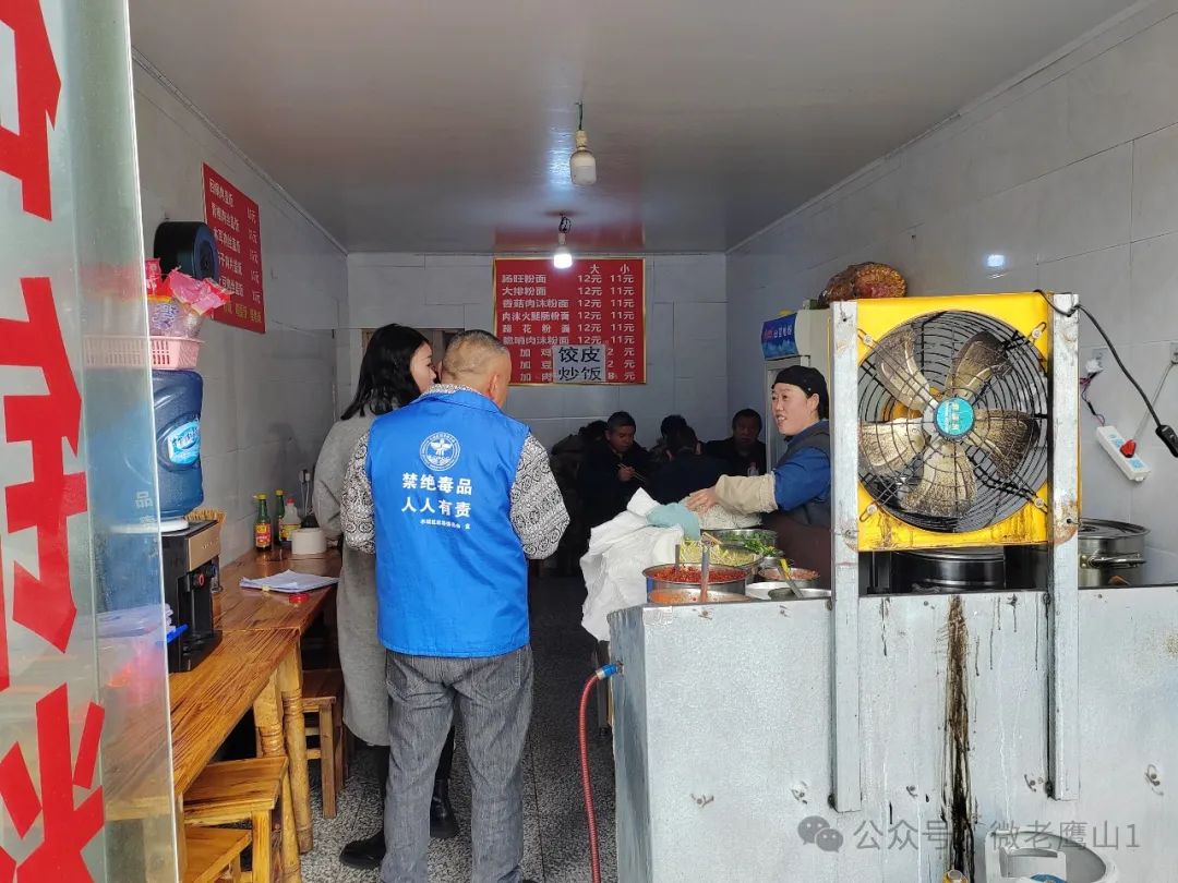 为进一步加强辖区餐饮业主禁毒意识,严厉打击在食品中非法添加罂粟壳等违法犯罪行为,确保我街道餐饮行业无涉毒行为的发生。2024年3月15日,老鹰山街道禁毒办在辖区开展第一季度餐饮行业禁毒专项检查工作,并与业主们签订饮食行业禁毒承诺书。