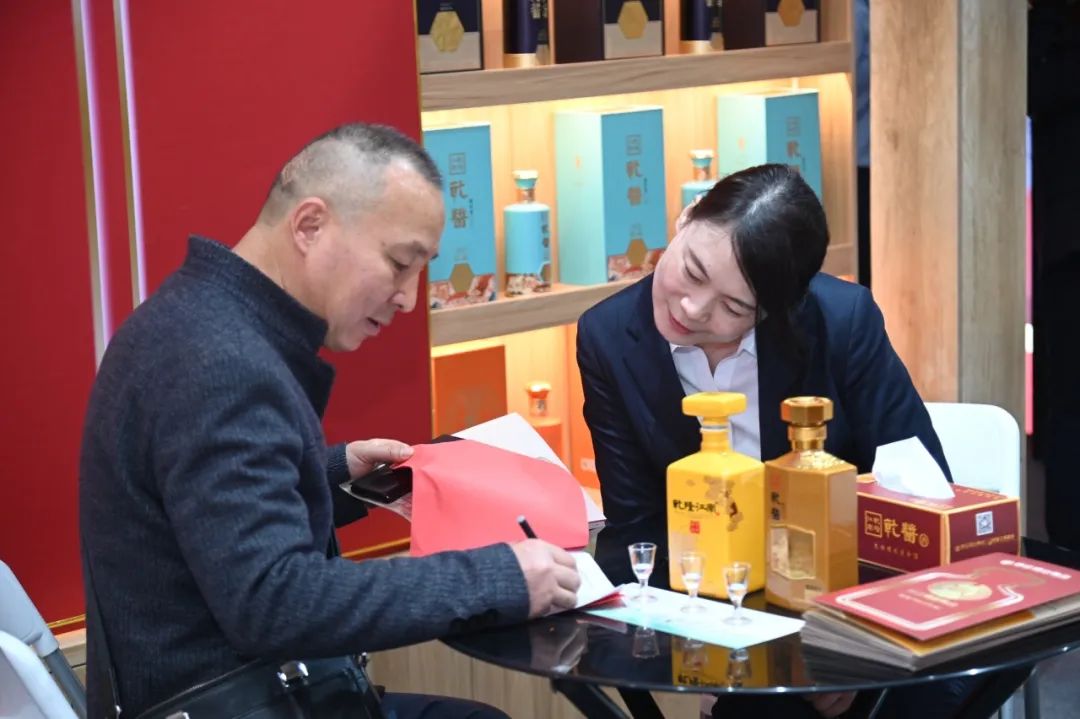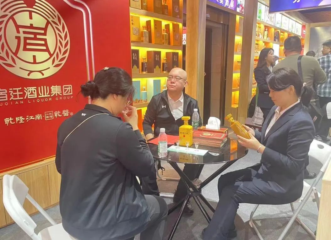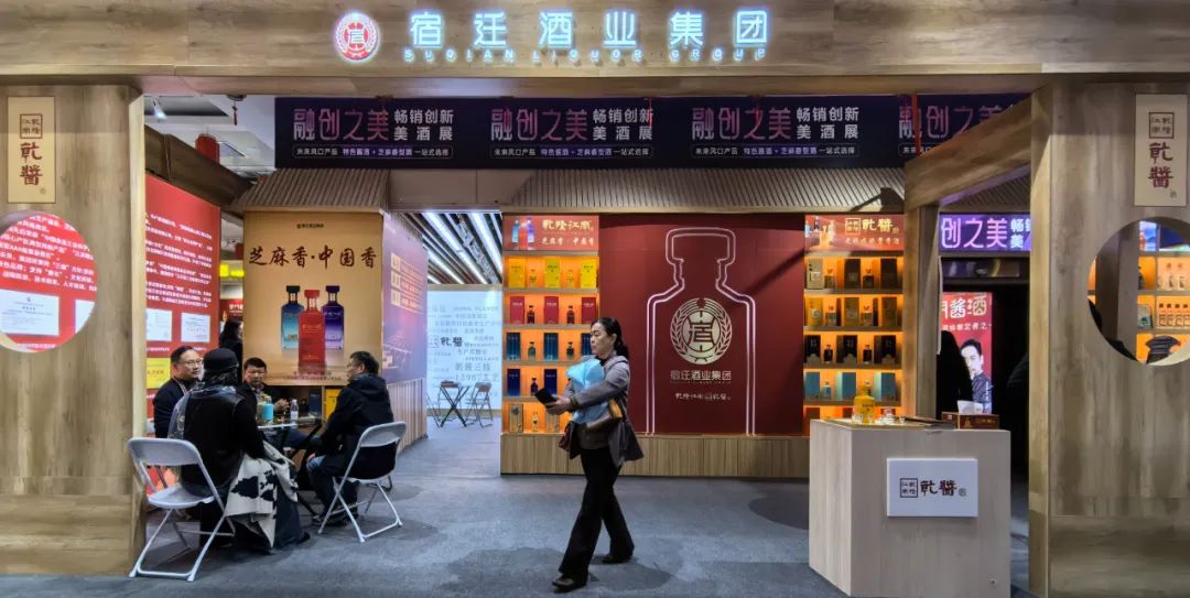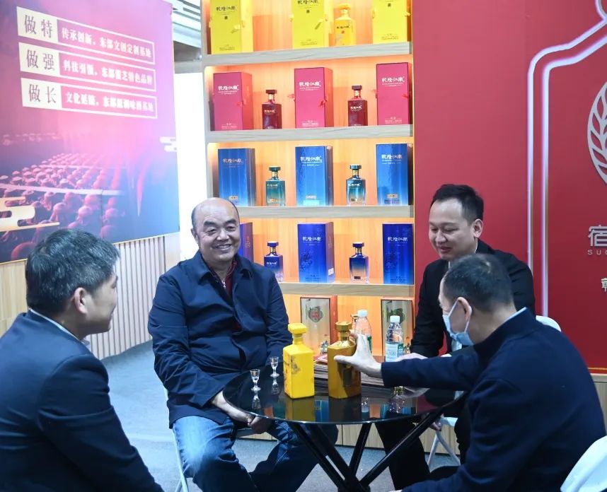 本届糖酒会,宿迁酒业集团携四大系列(乾酱系列、乾系列、D系列、天地人系列产品)、文创定制、酒庄窖藏、原调味酒四大业务类产品,开展招商接洽。