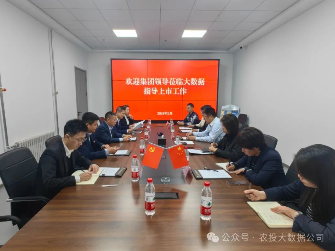 3月15日下午,农投集团副总经理王彬,江海证券相关人员一行到大数据公司指导上市工作,了解大数据公司上市进展情况和企业经营发展情况。大数据公司总经理张明,党支部副书记、副总经理韩磊陪同调研座谈。