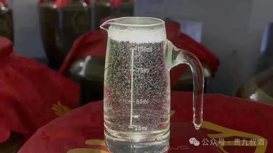 酱香白酒通常为透明或微黄色,透过酒杯观察酒体是否清澈透明,无沉淀和杂质。