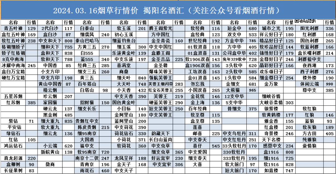 ☀ ,致力于发布揭阳当日行情价。点击上方名酒汇关注每天行情