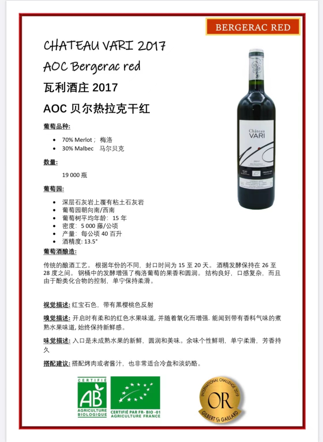 瓦利酒庄贝尔热拉克干红