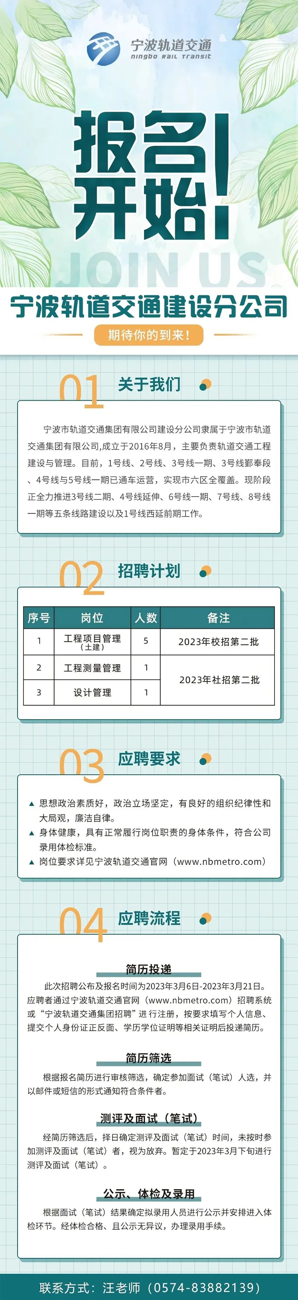 3、宁波轨道交通建设分公司2024年招聘公告(3.21)