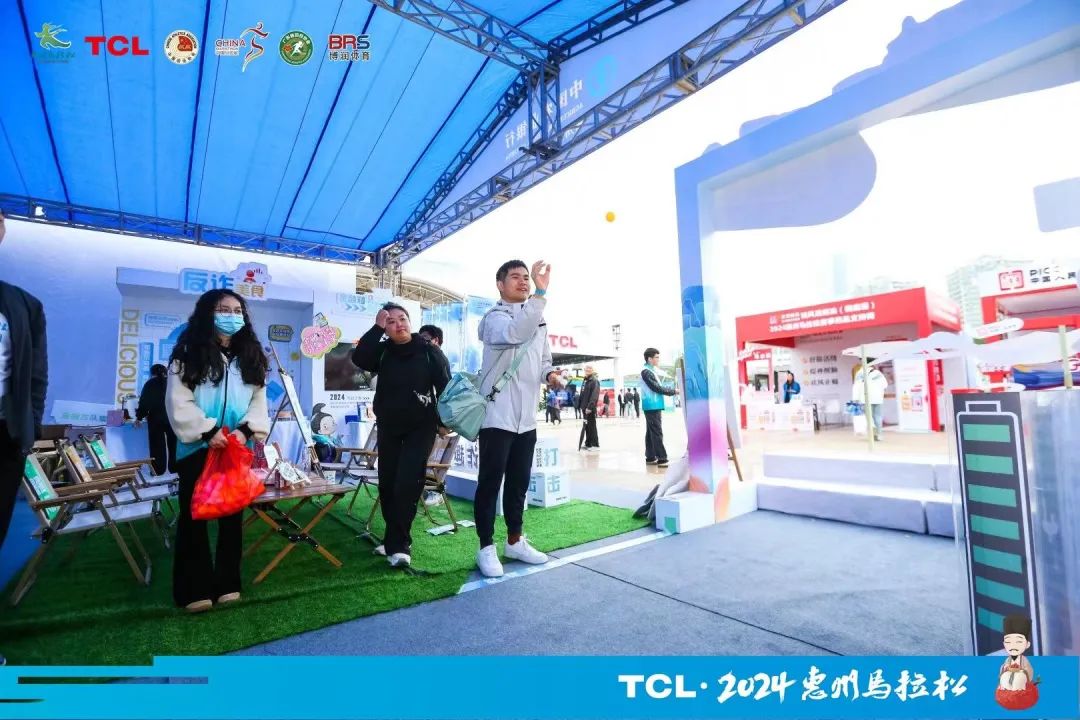 博览会现场还设置了TCL、美孚一号、伊利金典、海之言、汤达人、劲家庄等赞助商展位,展位精心布置,有着众多有趣的互动小游戏,吸引着跑者们拍照打卡,参与互动。