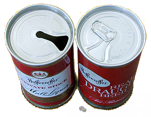 1975 年,肯塔基州路易斯维尔的福尔斯城酿酒公司推出了第一款拉环保留式罐装啤酒。这个设计让拉环与罐头盖保持着联系。如今,几乎所有碳酸饮料都以带有拉环的罐装形式销售。