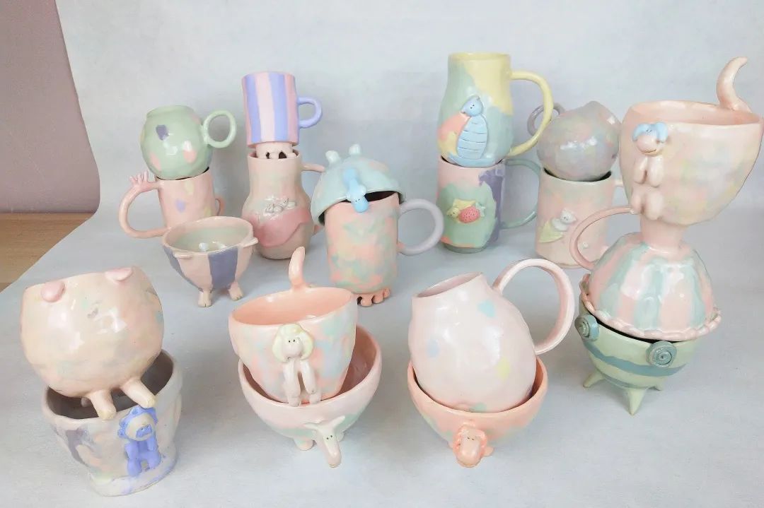 在创作陶瓷雕塑之余,喜欢创作各种可爱的杯子,并在巴黎定期开办捏陶workshop