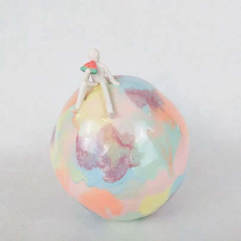 毕业后主要研究陶瓷雕塑创作和釉的烧成,创作主题一般围绕人与宇宙万物的联系