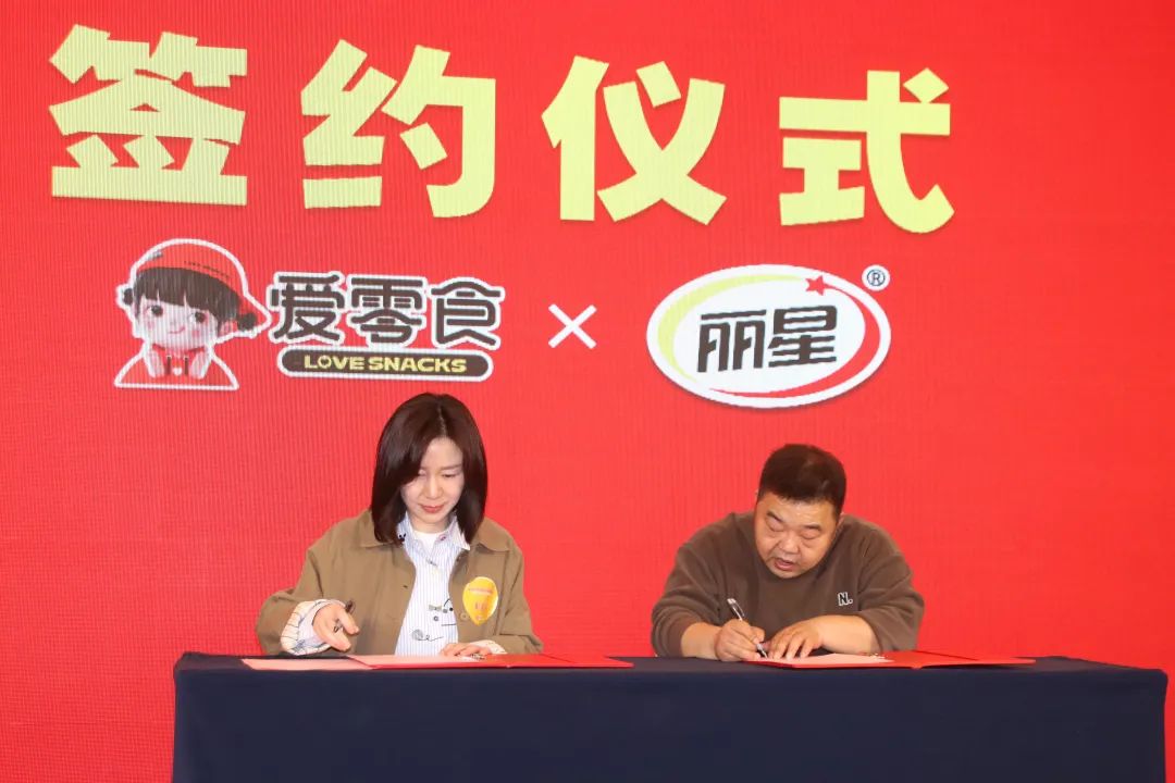 著名零食连锁品牌---爱零食,与丽星公司现场签约。销售总监张军辉与爱零食负责人签订合作协议书。