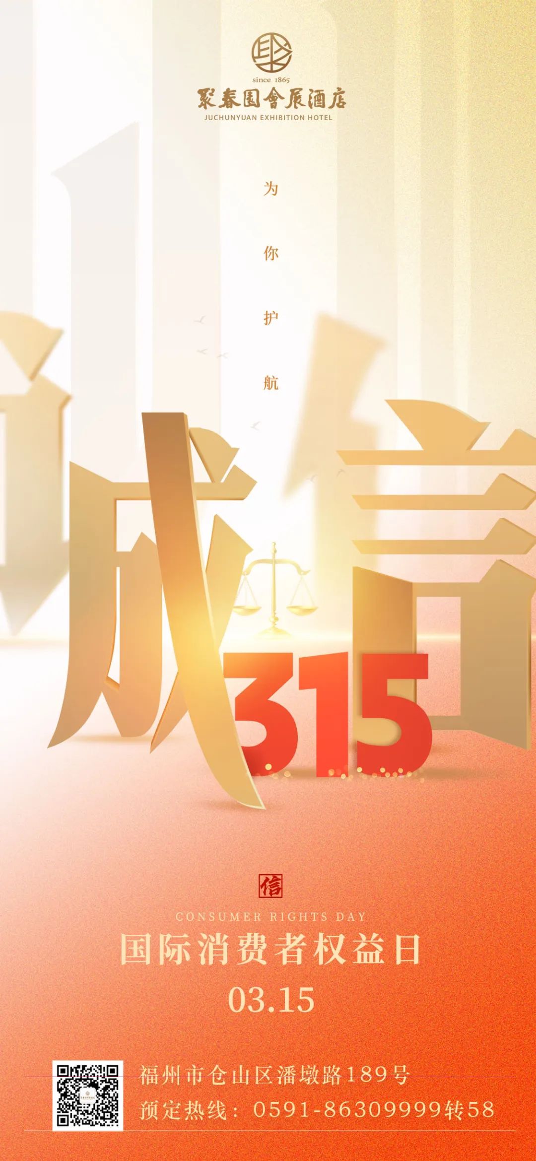 践行品质,诚信经营。315消费者权益日,酒店为消费添一份责任,让生活多一份温馨。恪守本真,坚守初心。倡导诚实守信,共铸消费和谐。