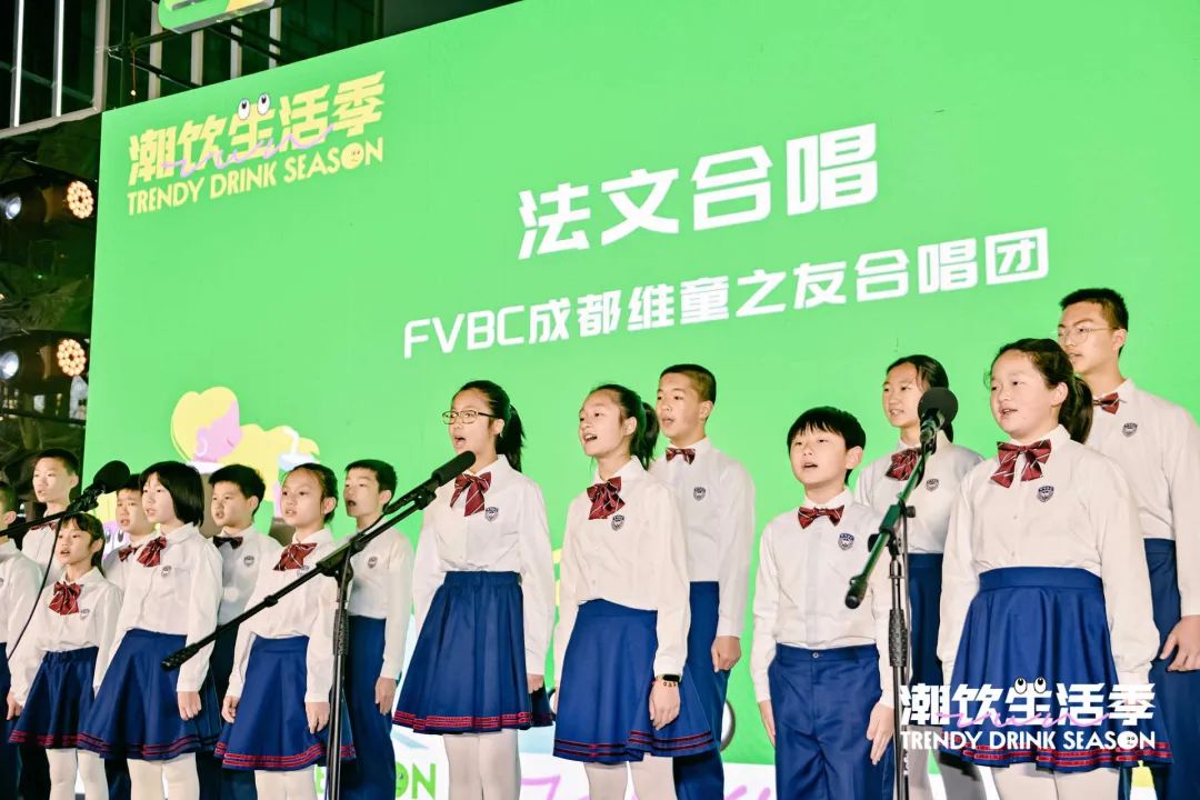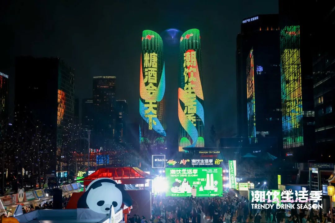 晚上7点,“糖酒会天下·潮饮生活季”开幕式伴随着“维童之友”童声合唱团的歌声启幕。现场嘉宾与全场观众一同举杯,在成都地标天府双塔下,用世界各地的语言,共同发起成都与世界的干杯邀请。