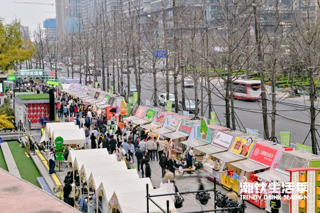 交子大道上,60余家新潮摊主汇聚在此,带来潮饮、潮食、潮服、潮玩等新潮好物,更有新式茶饮品牌和潮流艺术品牌在成都开启首秀。