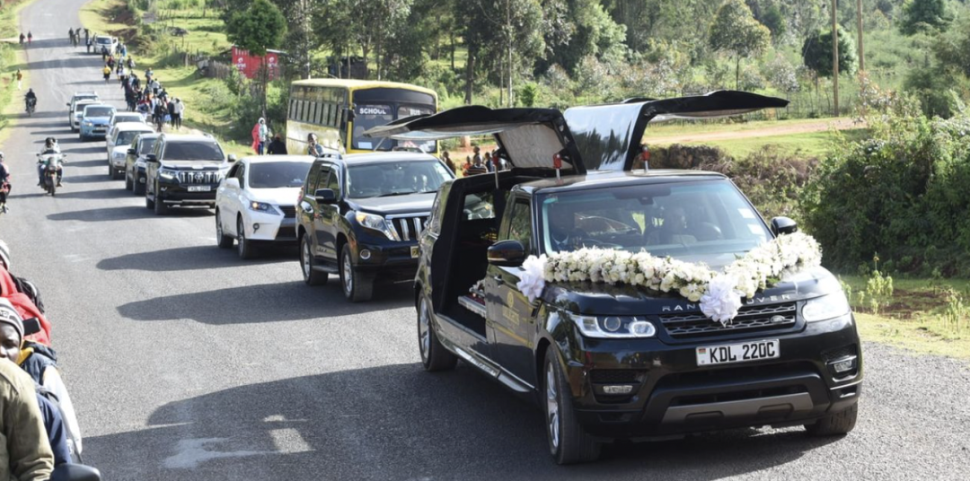 灵车将基普图姆的遗体从他的家乡切普萨莫运往切普科里奥的葬礼途中