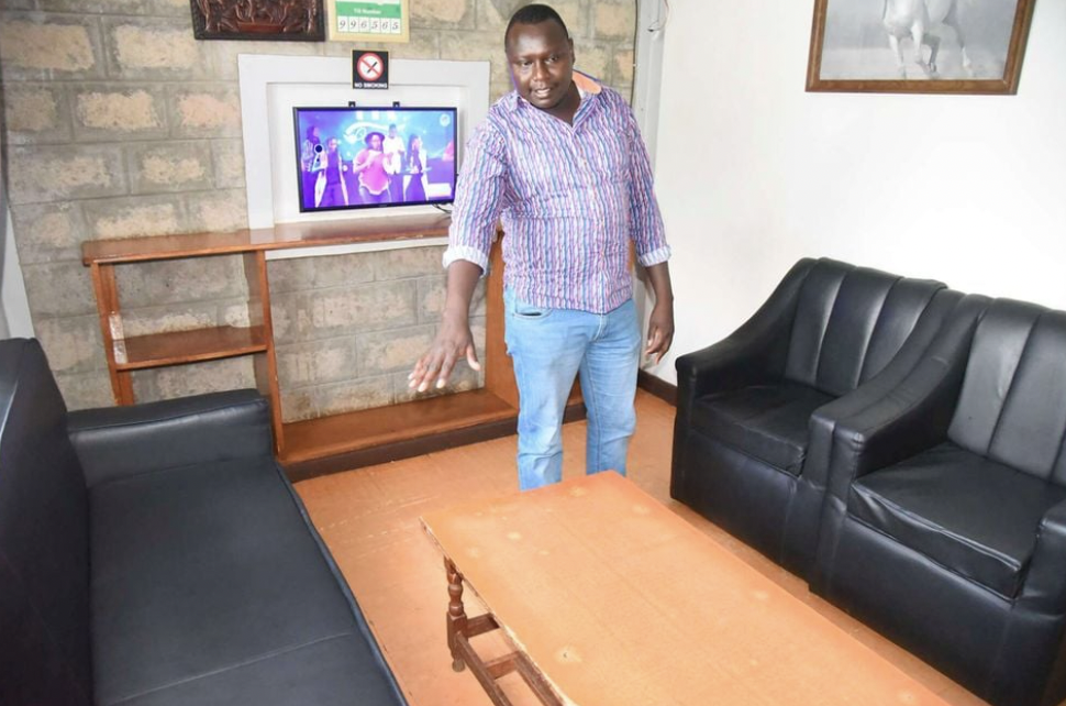 当地时间3月8日,埃尔法斯·西蒂内伊,大米阿米尔宾馆的经理,展示基普图姆、教练热尔维斯、莎伦·科斯盖坐过的地方,不久后他们卷入了一场交通事故
