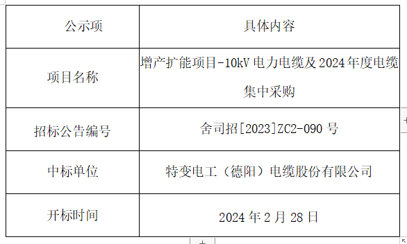 增产扩能项目-10kV电力电缆及2024年度电缆集中采购