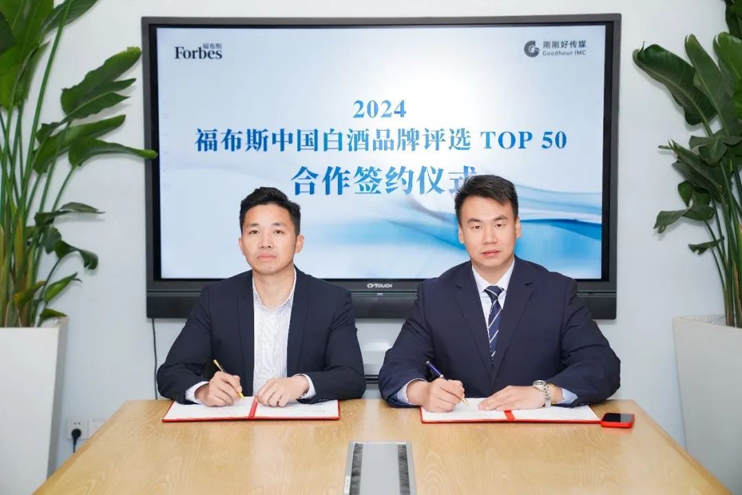 近日,福布斯中国集团与成都刚刚好文化传播有限公司(以下简称“刚刚好传媒”)举行签约仪式,携手推出“2024福布斯中国白酒品牌评选Top 50”。福布斯中国集团商务运营总经理郭隽祎与刚刚好传媒商务总经理谷正云出席本次签约仪式。
