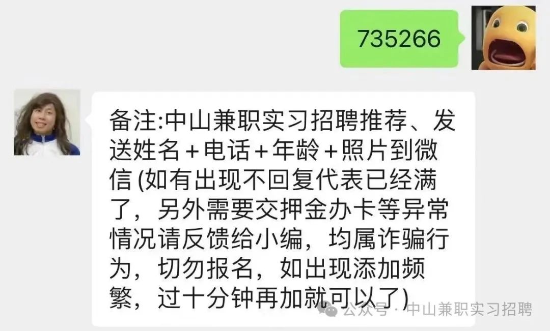 3、重要提示:不要交费给任何单位或者任何人!请勿相信任何形式的收费,如中介费、服务费、押金、伙食费等。