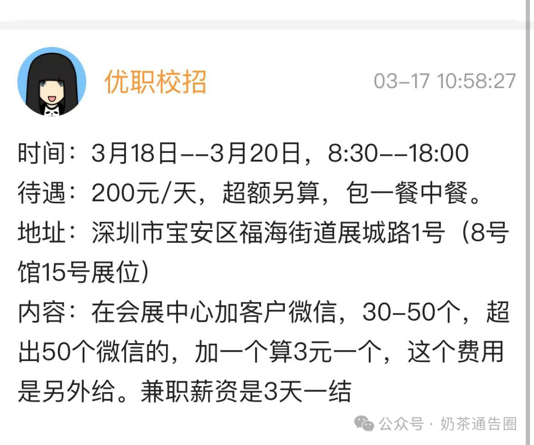 注:每场活动都来之不易,报名兼职后请勿鸽子。谢谢大家对奶茶君的支持