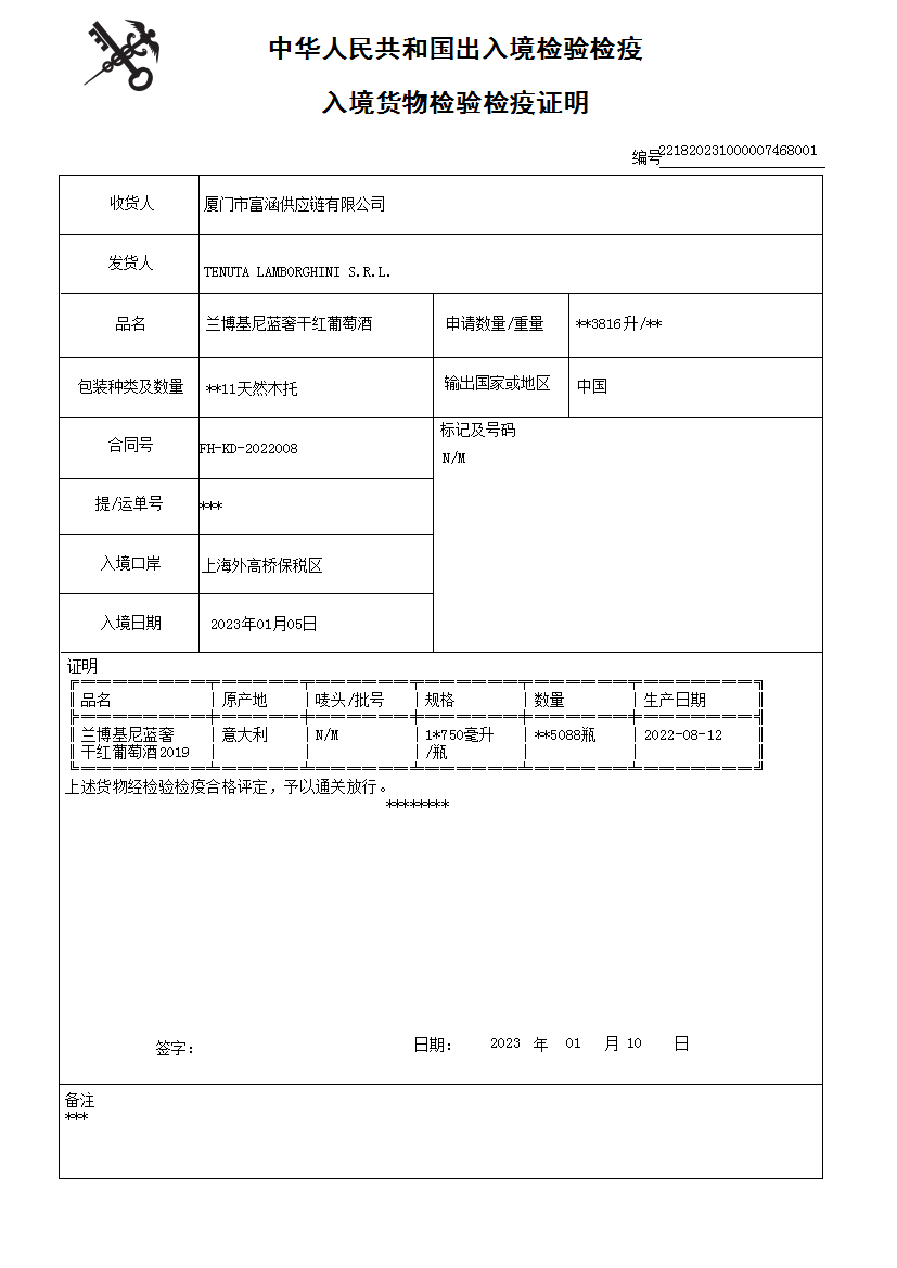 我们公司是兰博基尼葡萄酒庄中国大陆地区总代理,非经我司授权之官方渠道购买的产品,出现问题概不负责。订单在48小时内快递包邮,闪电直达。快递不到区域我们将为您选择其他快递。