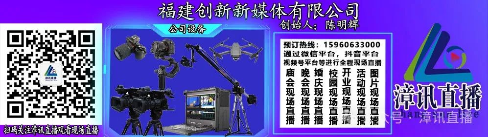 漳讯直播专业承接各类现场直播,如需庙会出巡现场直播,歌舞晚会现场直播,校园汇演现场直播,龙舟赛现场直播,开业现场直播,照片直播,婚庆拍摄,摄像等业务。