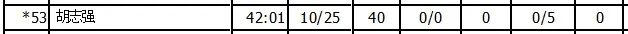 全场:53投16中,40分、7篮板、5助攻、4抢断,效率值16