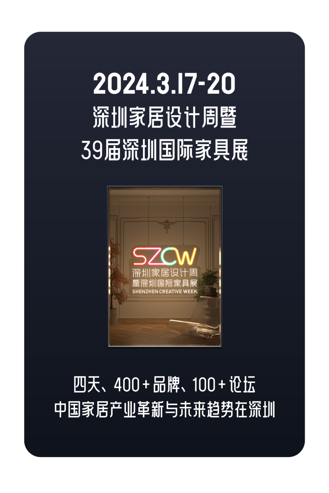 3月17日,深圳家居设计周暨深圳国际家具展盛大开幕,100+设计界大咖、400+家居大牌集结,以创新之作重构中国家居新业态,为人们提供更有设计感、更智能、更能代表当代文化潮流的生活场景。