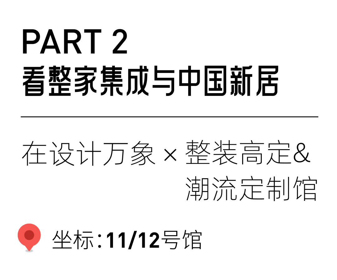 11号馆「潮流定制」馆与12号馆「设计万象×整装高定」馆,云集图森、南洋迪克、三只喜鹊、蓝谷、诺贝尼、迪信、法洛可、MU21、柏森高定、漾极、和砚·行2.0、莫霞高定等高定大牌,及顾家定制、索菲亚、百强定制、百能、法迪奥×馨宁居、楷模、赖氏、型道、榀至、联邦家居、朗生等定制大牌,以及艺峰、府邸家居、珞珂、KOSMO、润木、宜臣、哈顿一号、美华美、柔木艺术家居、派克兄弟、众多家居品牌的新模式与新系列竞相绽放,演绎全新的整装高定与整家集成新生态。