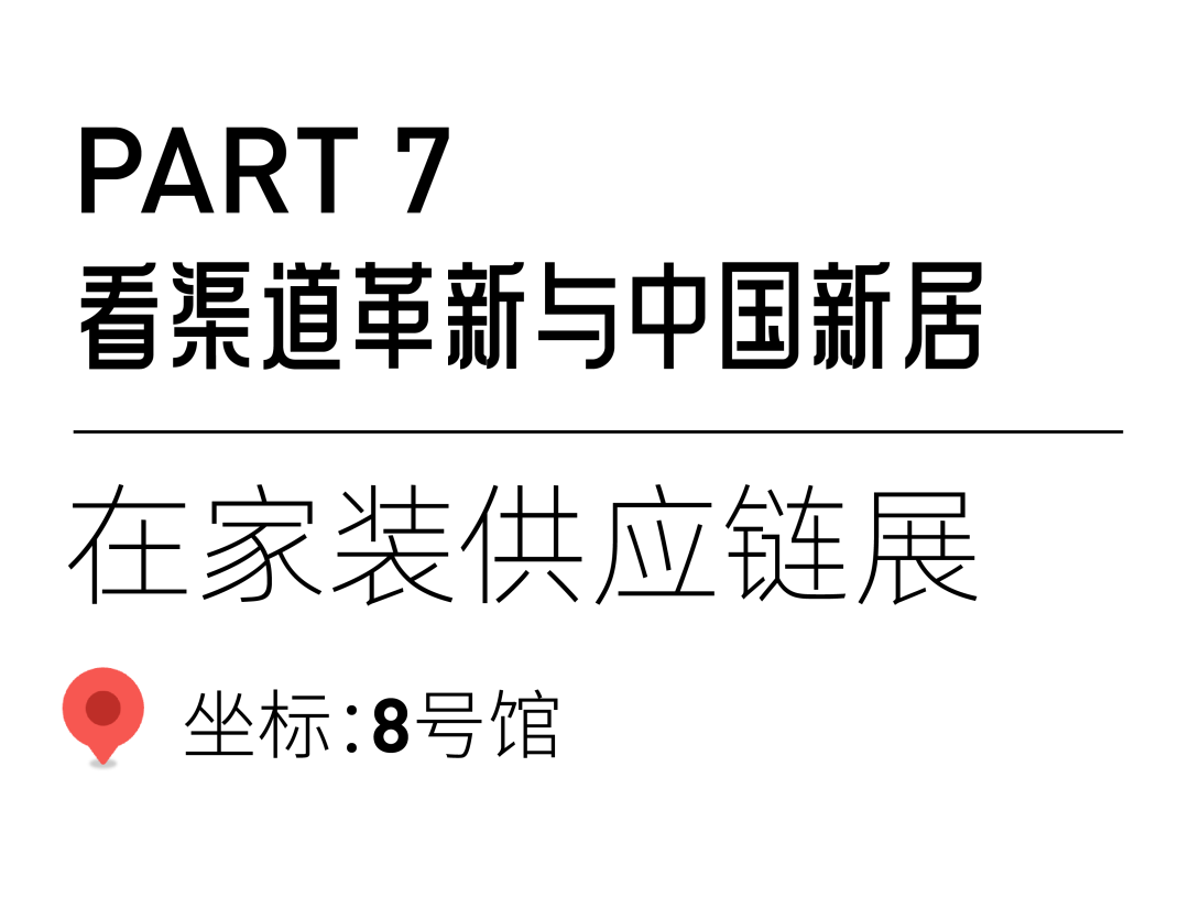 8号馆,首个家装供应链展,集结建材、灯饰、软装、家具等品牌,构建整家集成一站式采购平台,为装企、设计师、KOC/KOL等,精准对接线上带货好品牌,同时,首届【爱上美好家】整装超级设计大赛赛果于8D12论坛区重磅揭晓,家装一体化商业闭环,助力企业拓展家装渠道,掌握流量入口和商业密码。