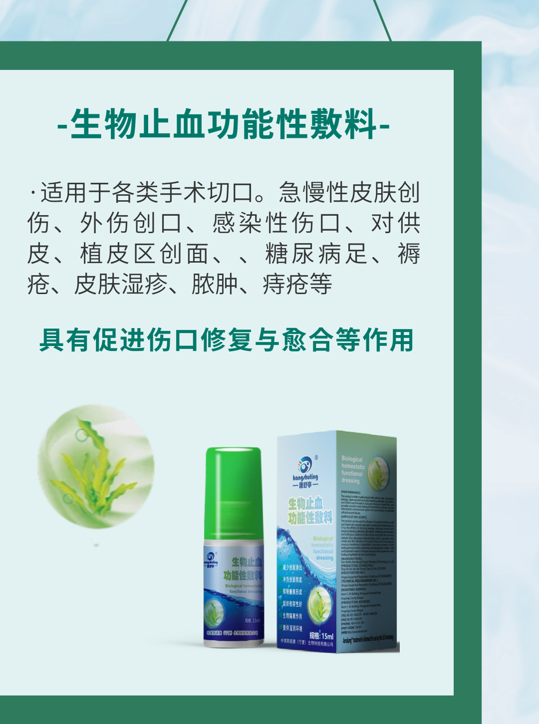 适用范围:本产品适用于外科手术或外伤创面的出血、渗血的止血,可保护创伤面。