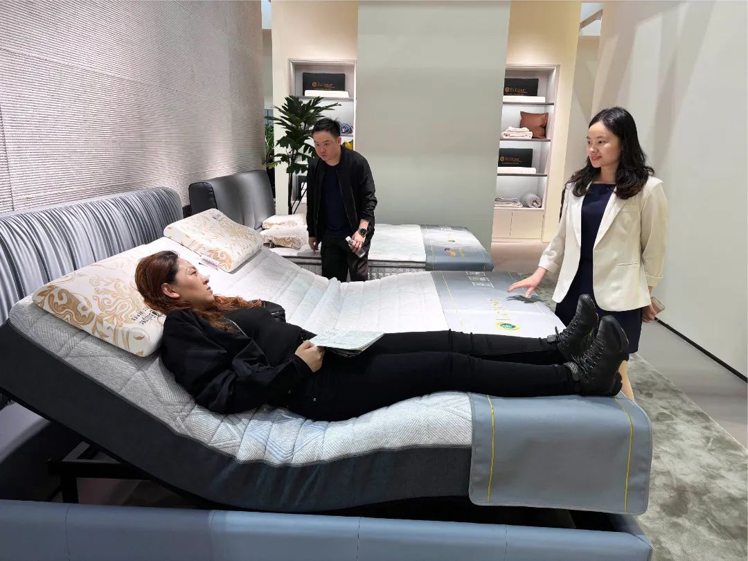 在展会期间,美国伊丽丝的专业团队向观众们分享展厅设计的灵感和创意,并耐心介绍我们独特的产品特点和技术优势,与现场的展客一同探索伊丽丝产品的魅力,感受舒适与品质的完美结合。