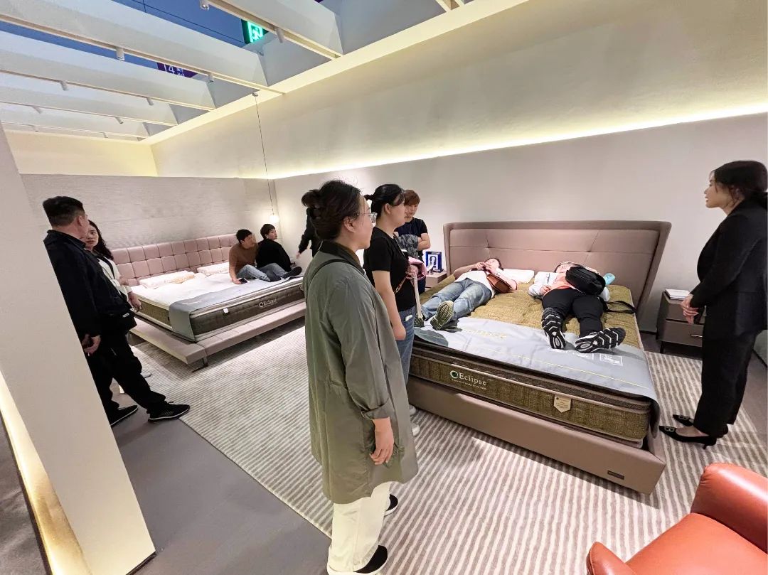 开展首日,Eclipse伊丽丝就凭借不凡的展馆设计、美观大气的产品吸引大量参展者驻足,来体验的观展客商更是络绎不绝,跟随镜头一起感受深圳家具展现场盛况!