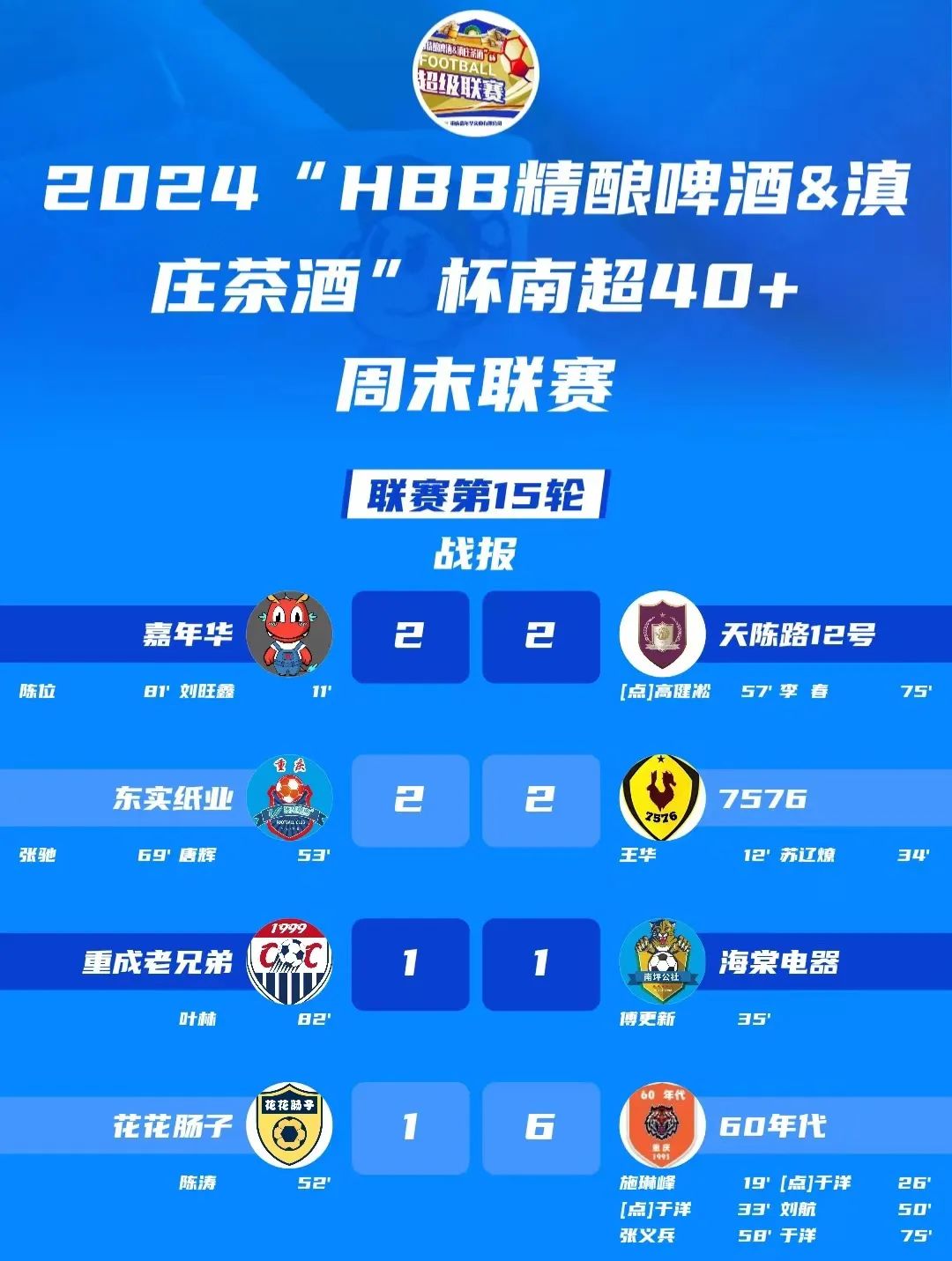 2024“HBB精酿啤酒&滇庄茶酒”杯南超40+周末超级联赛(第15轮)各项数据!