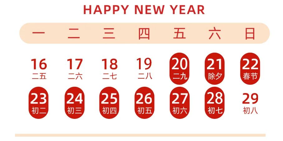 根据国务院办公厅《关于2023年部分节假日安排的通知》精神,结合我司实际情况,现将2023年春节放假安排如下:
