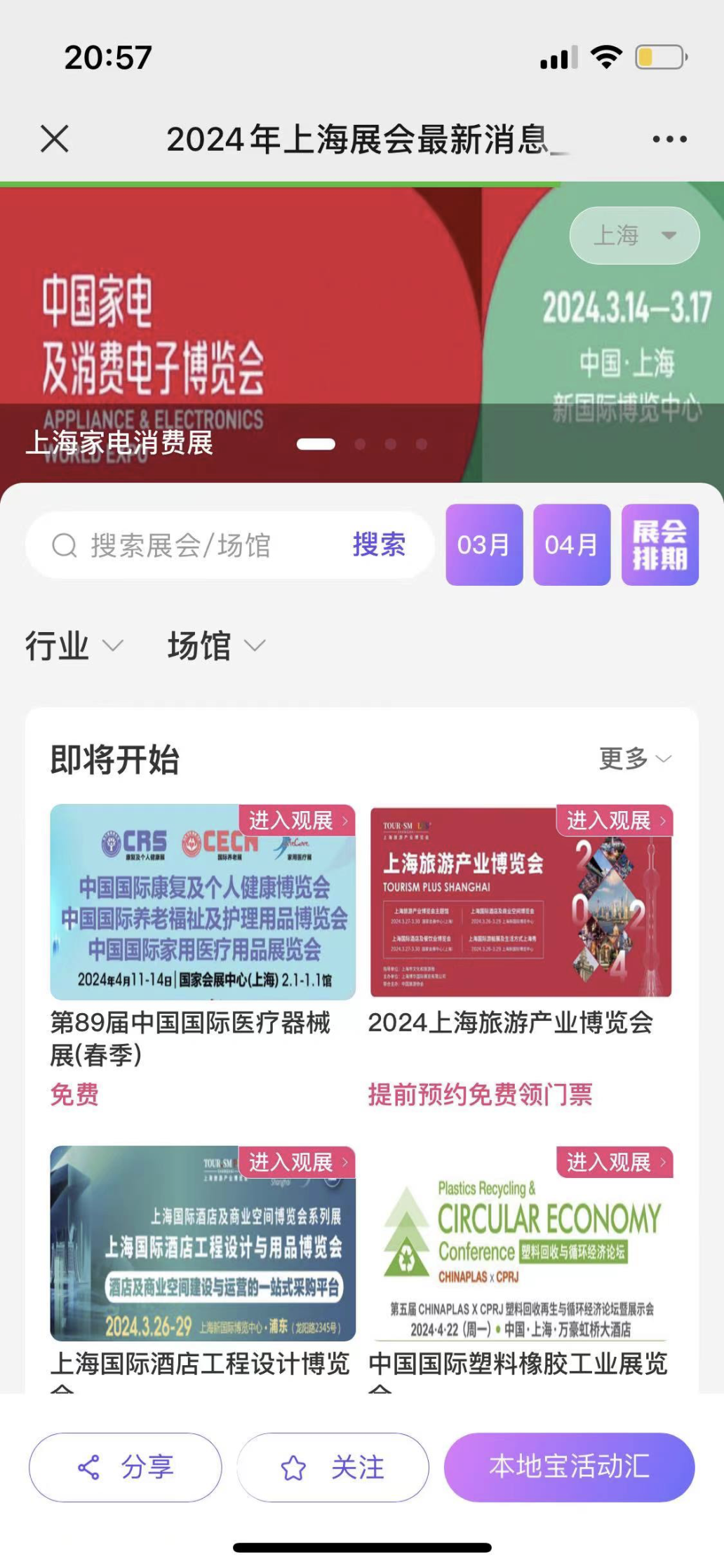?推荐服务:点击下方名片,关注上海本地宝,点击底部菜单栏【上海展会查询】,直达上海最新展会查询页面,免费索票入口、获取展会交通、展品范围等信息。
