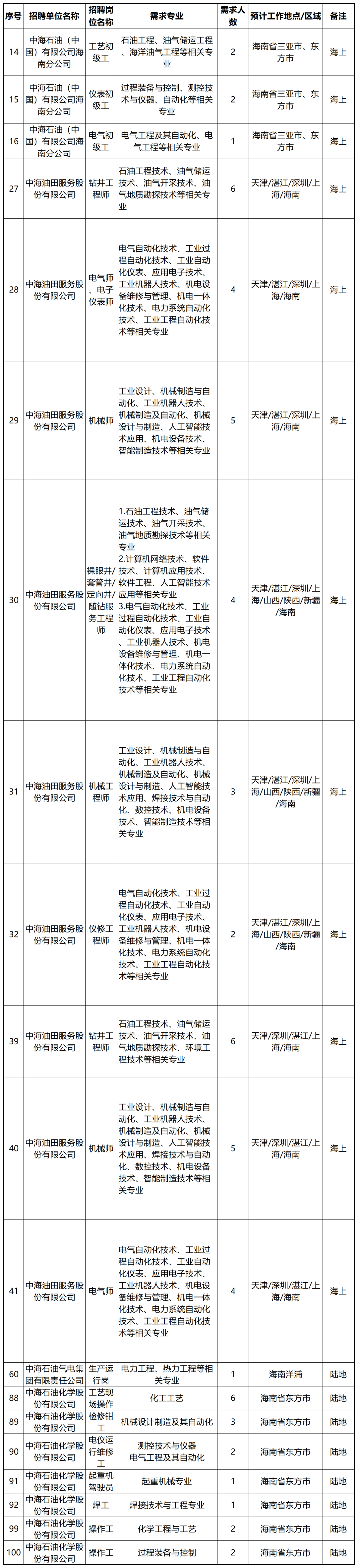 中国海油各单位招聘岗位及相关要求请登录招聘报名网站查询并投递简历,每名同学最多申请岗位不超过3个,可在中国海油下属的一家单位或多家单位申请。