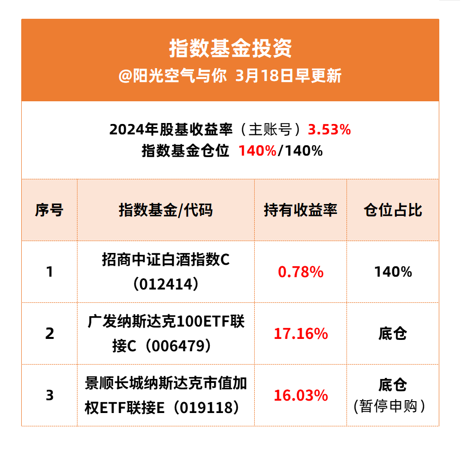 (3)个人策略:阳光个人继续等待回调后的机会,不着急上车。$广发纳斯达克100ETF联接(QDII)C$ 底仓观察。
