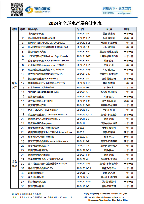 全球水产展会计划表(更新)